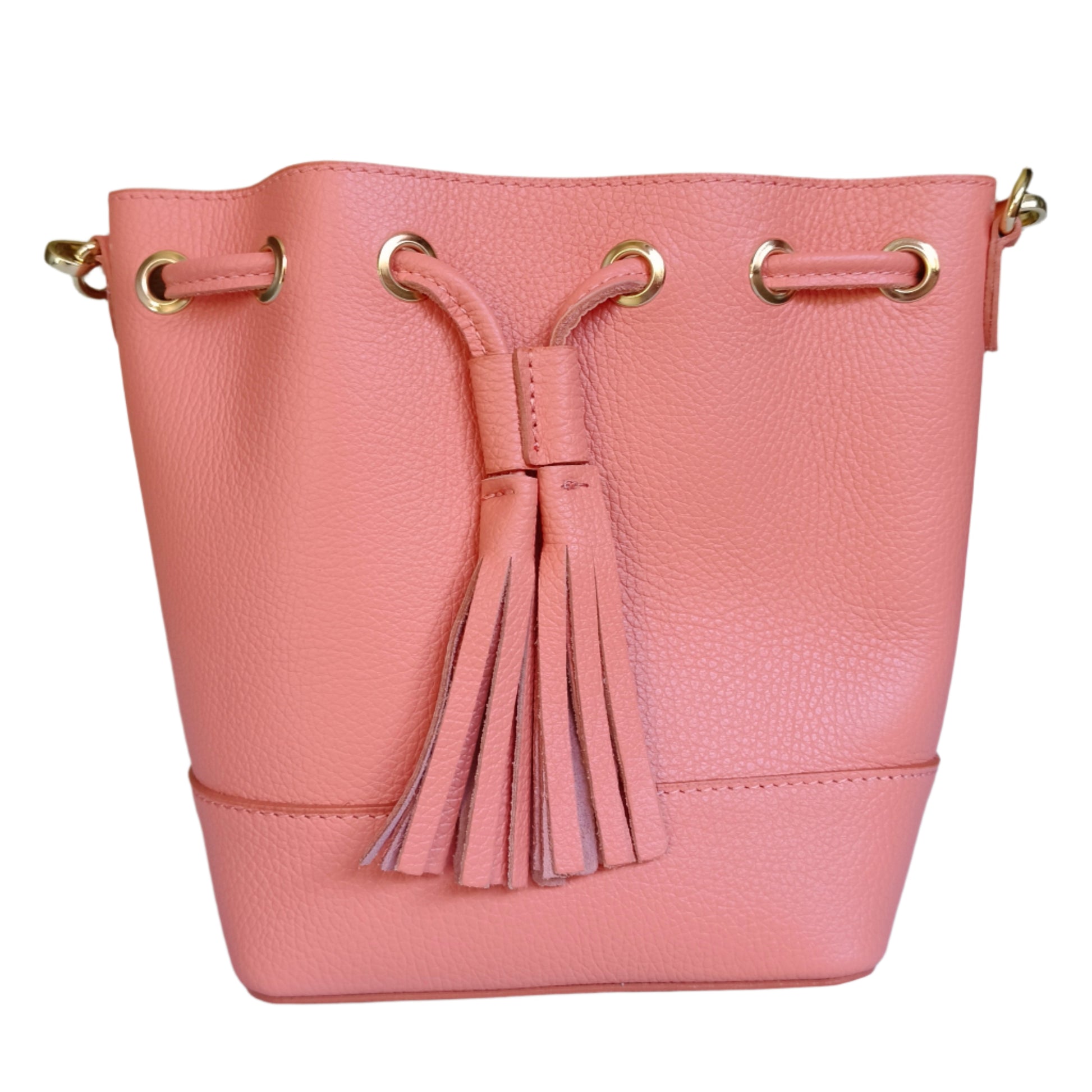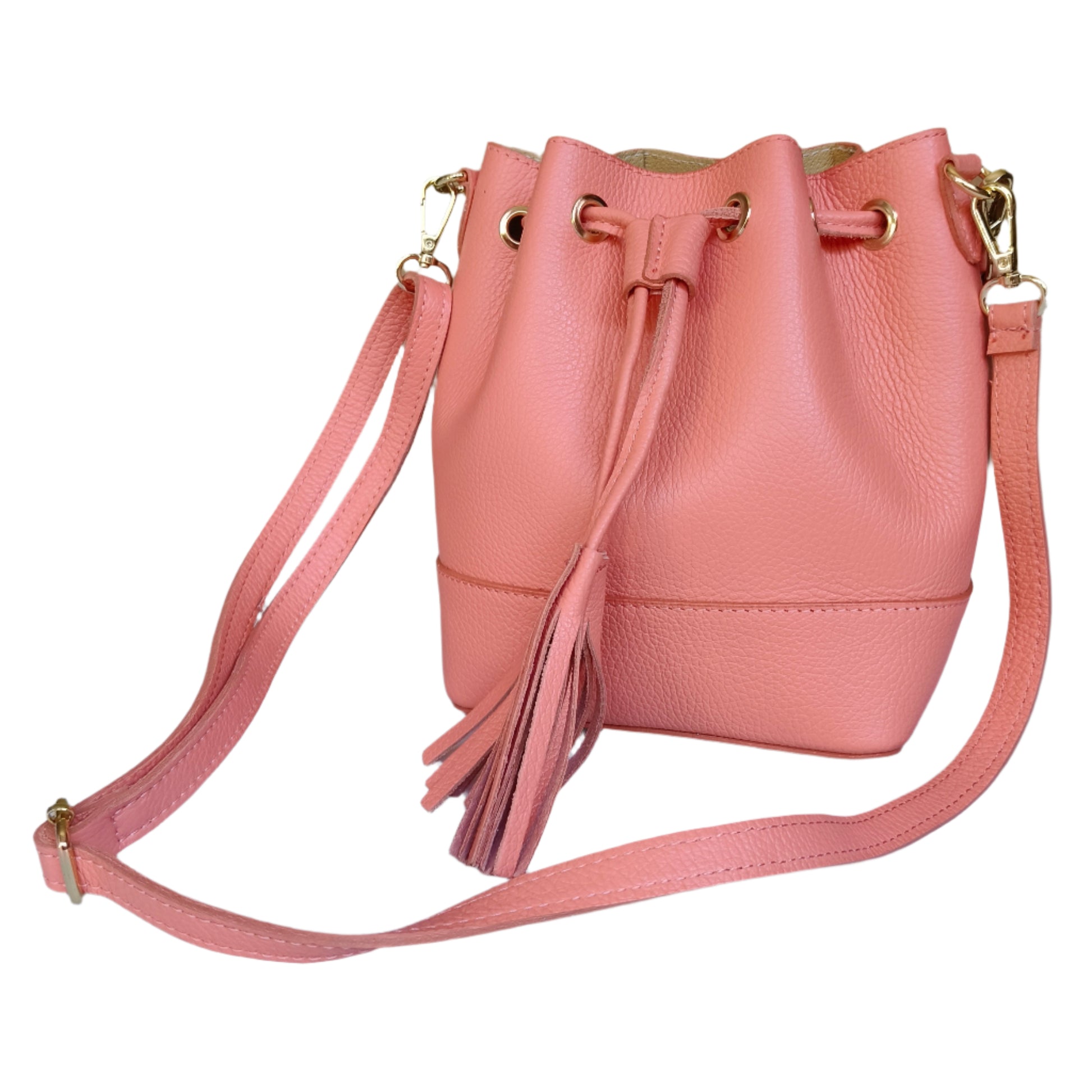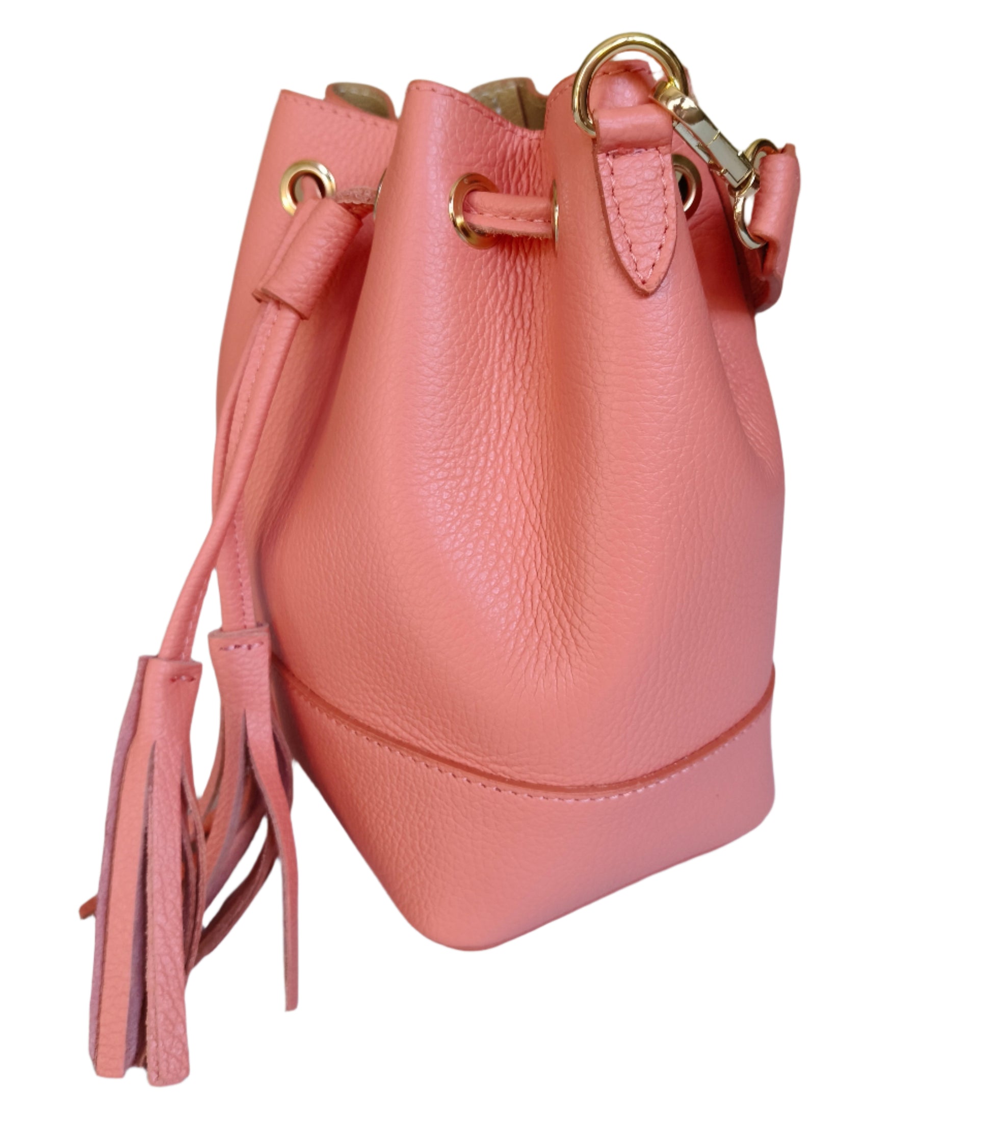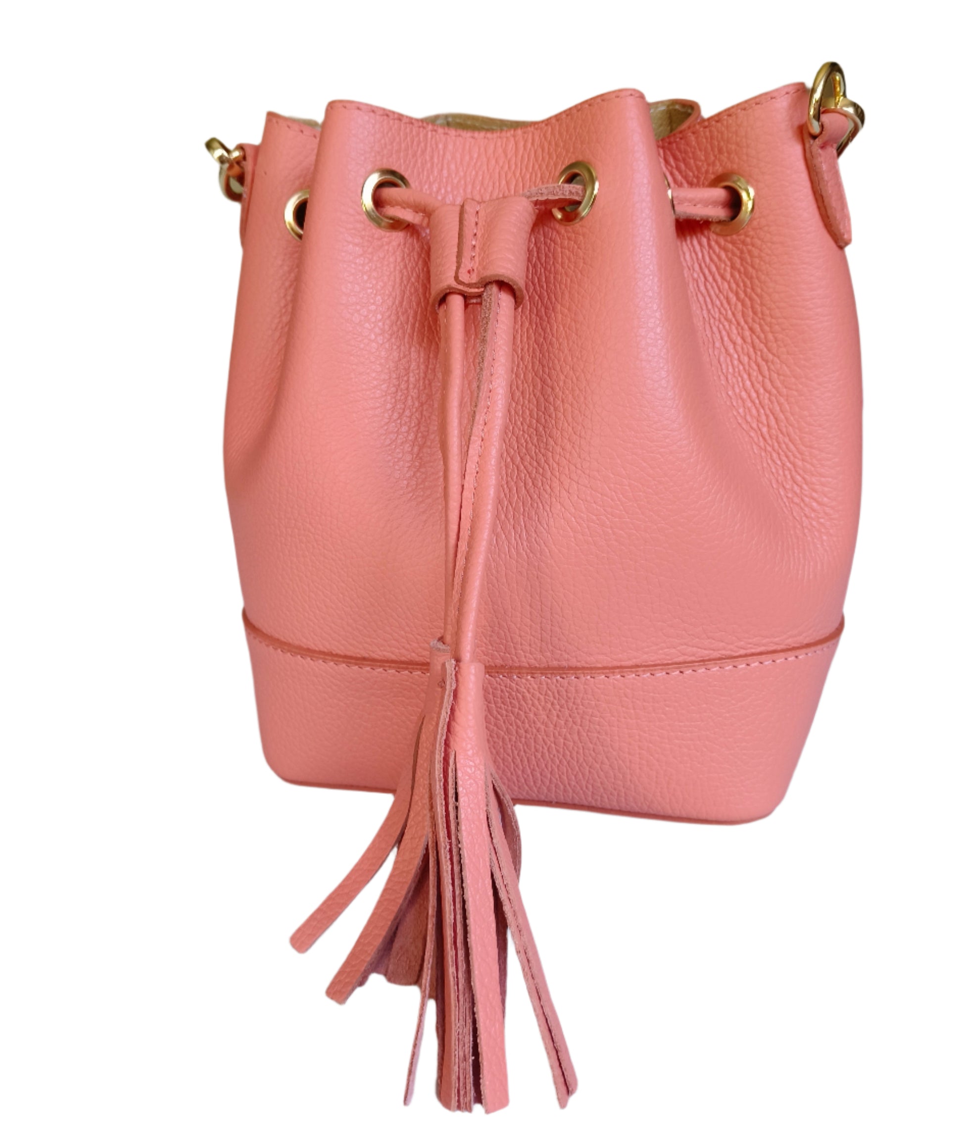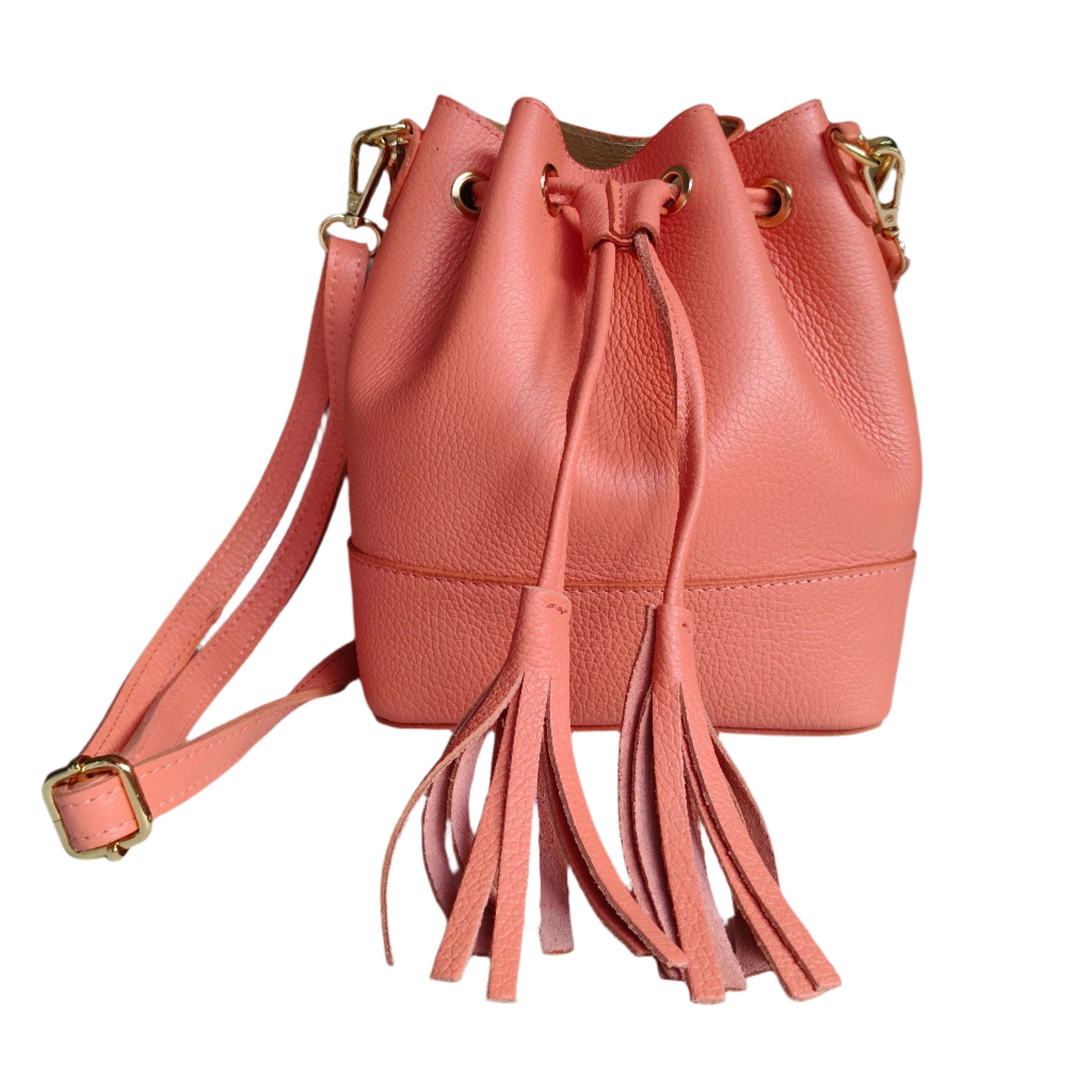 Expertly crafted in Italy, our Tangerine Leather Bucket Bag is a must-have accessory.