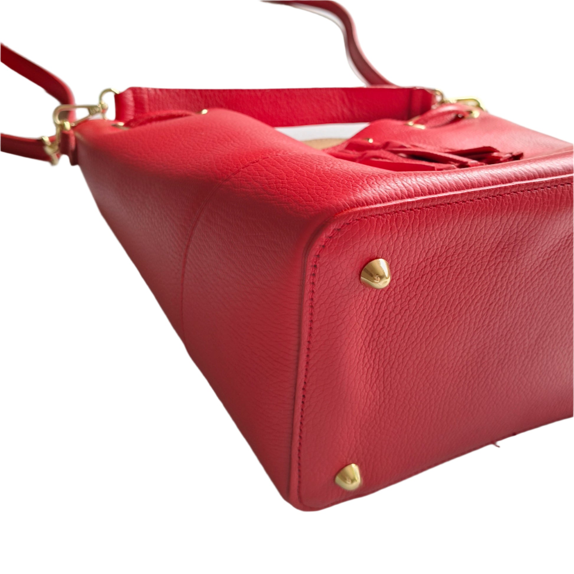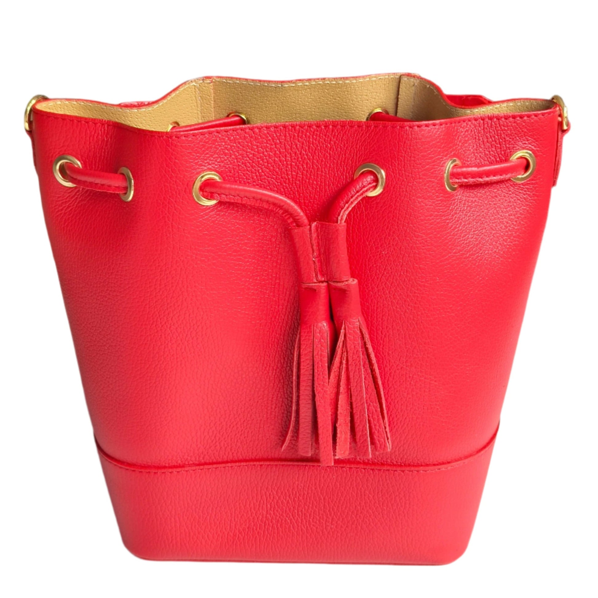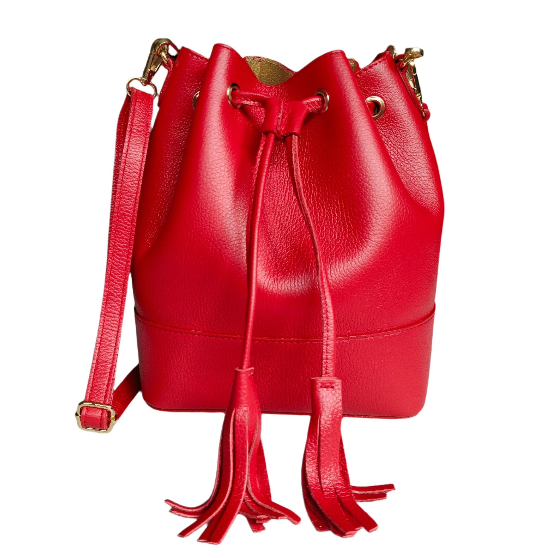 Expertly crafted in Italy, our Red Leather Bucket Bag is a must-have accessory.