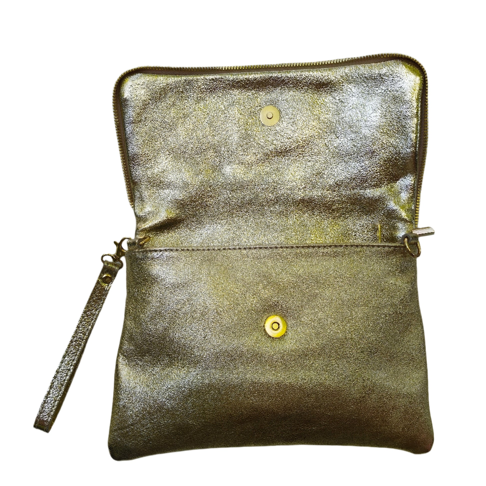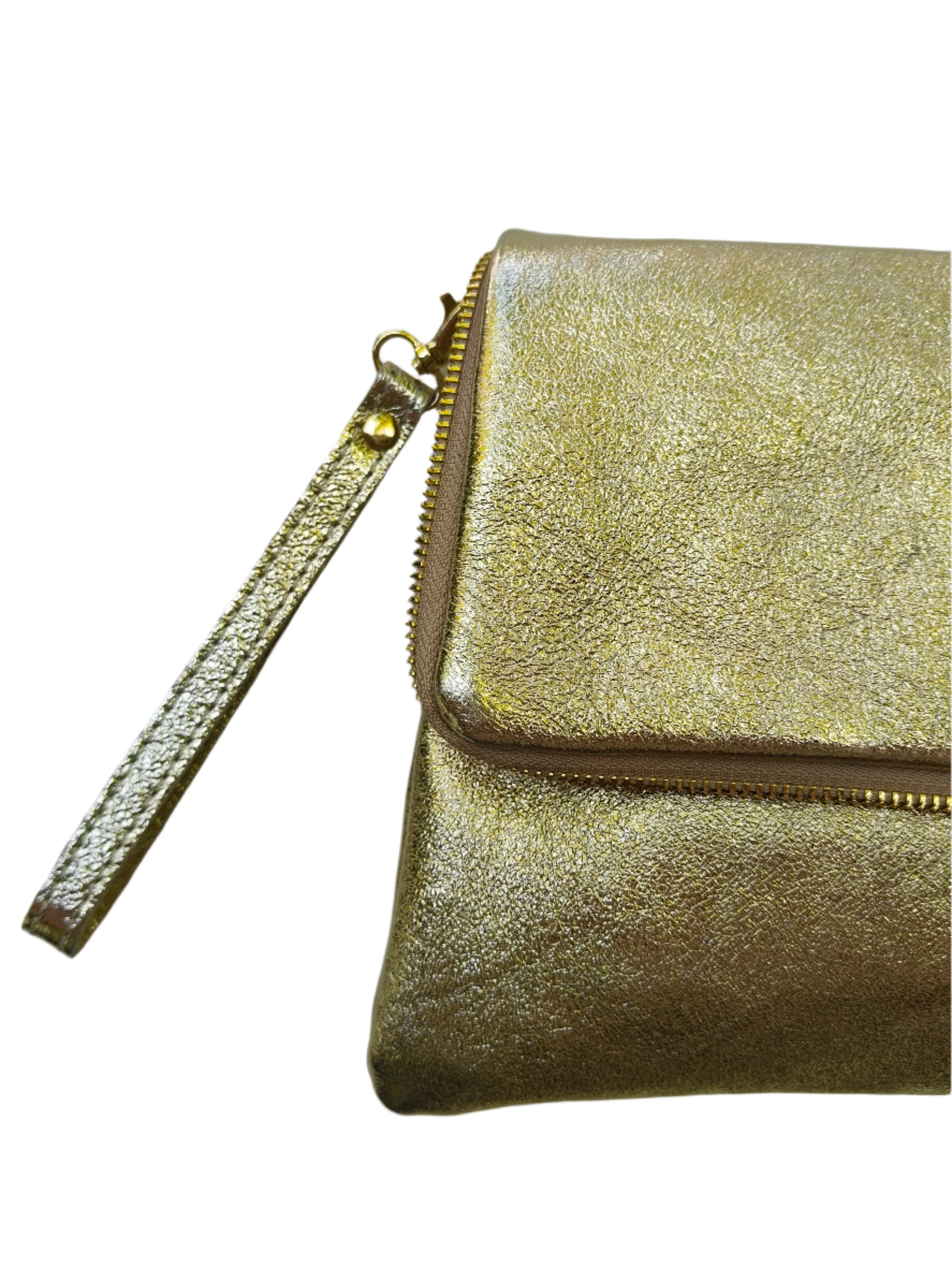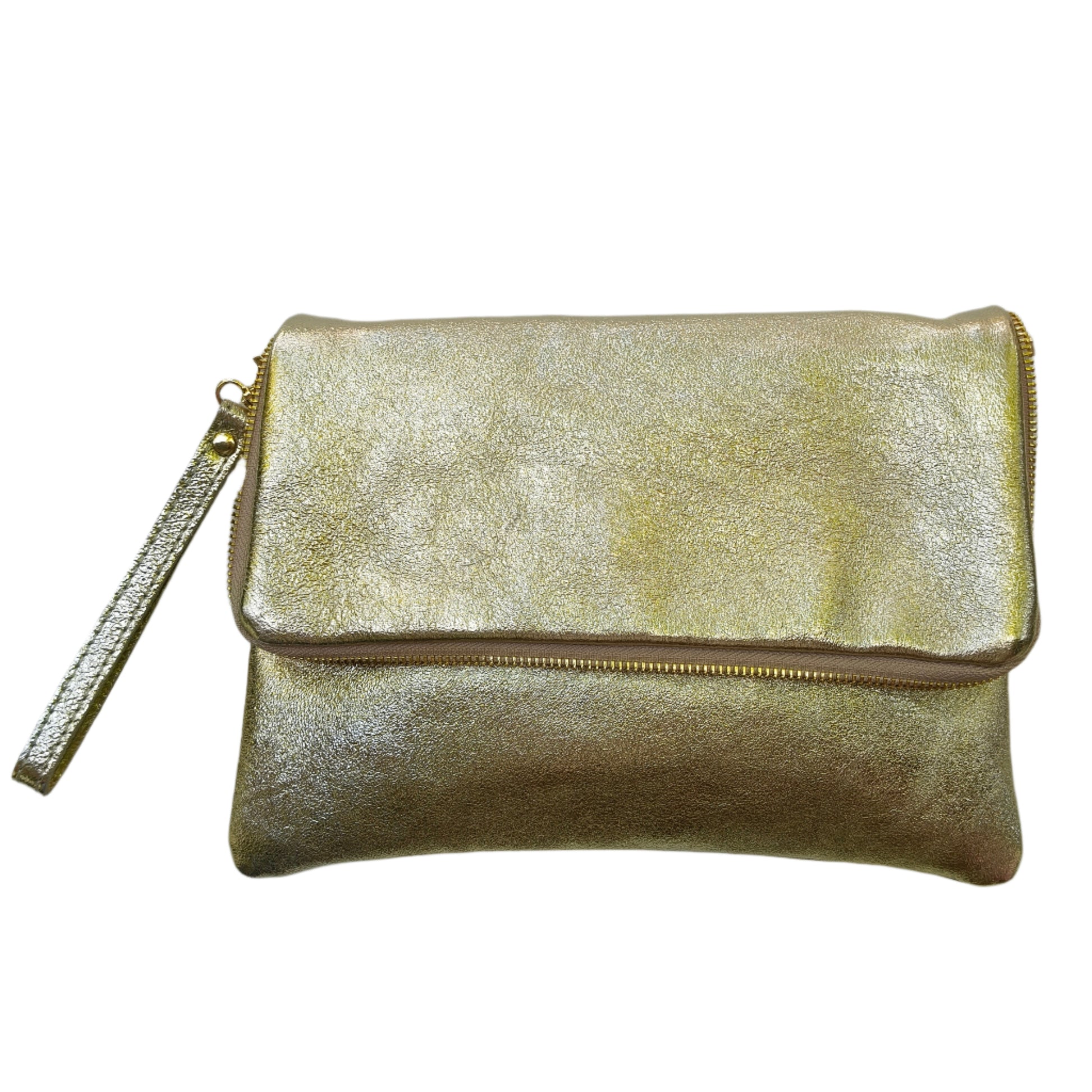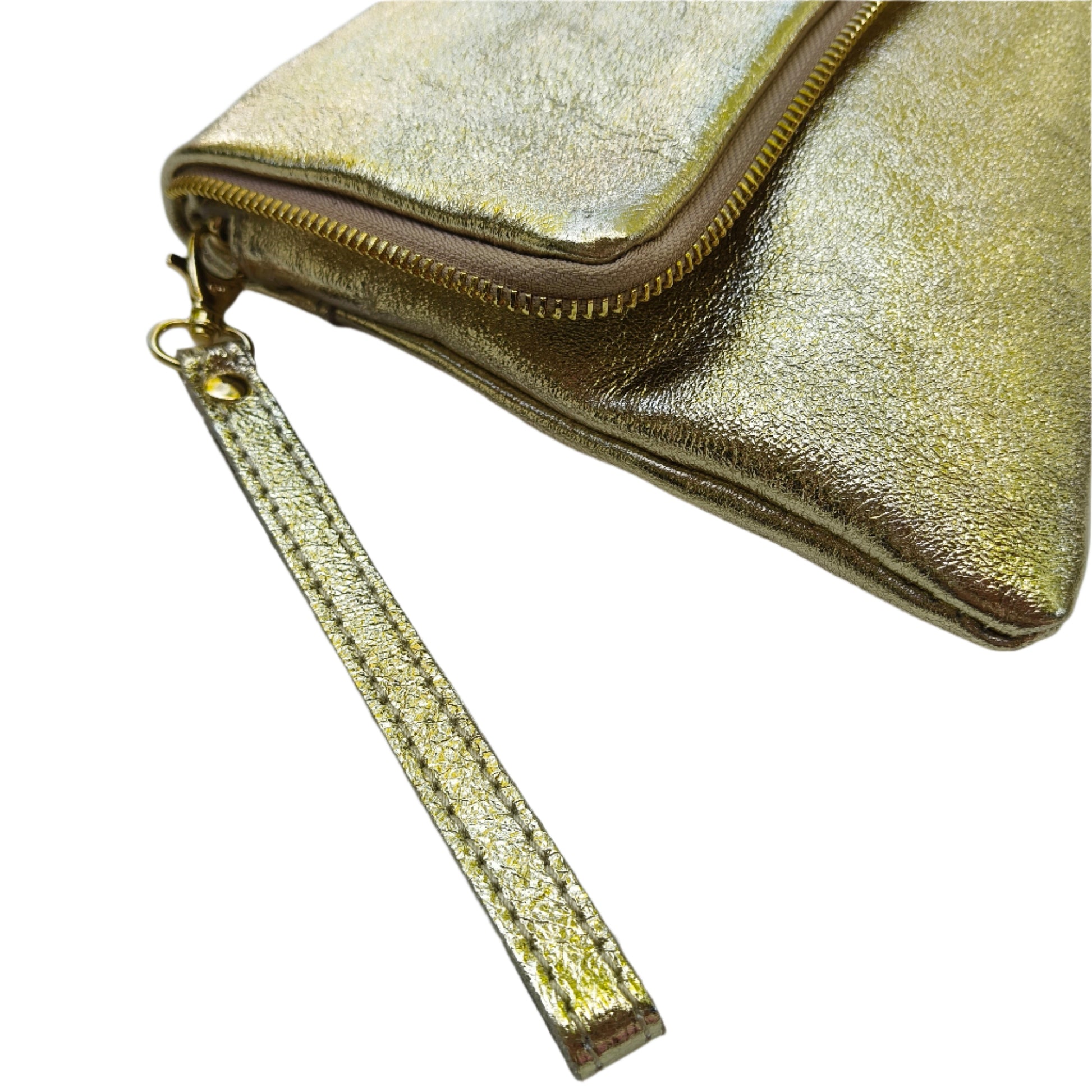 This timeless Gold Leather Folded Bag is crafted with genuine gold leather for a luxurious and durable finish.