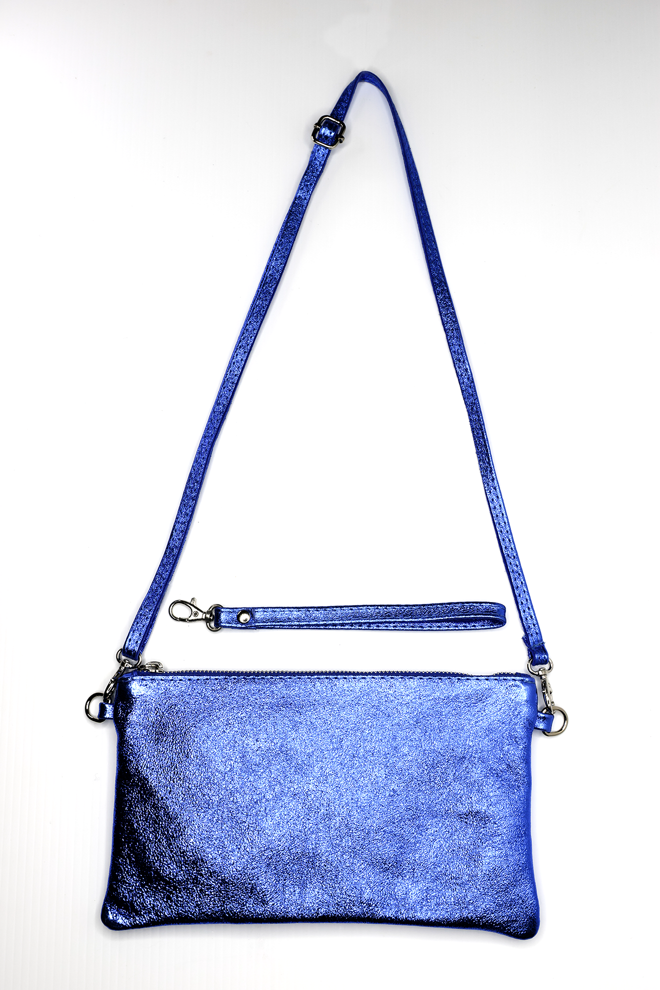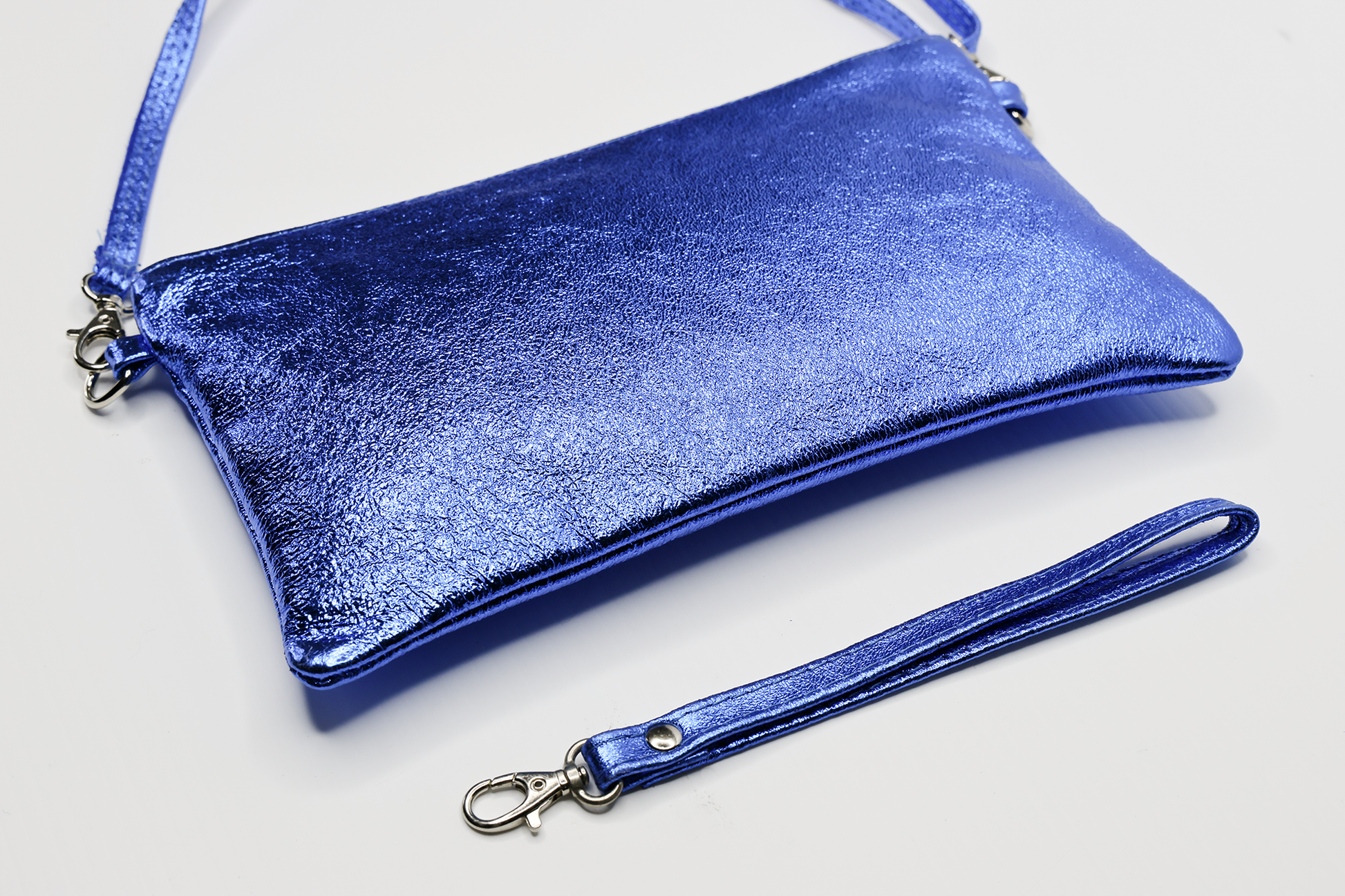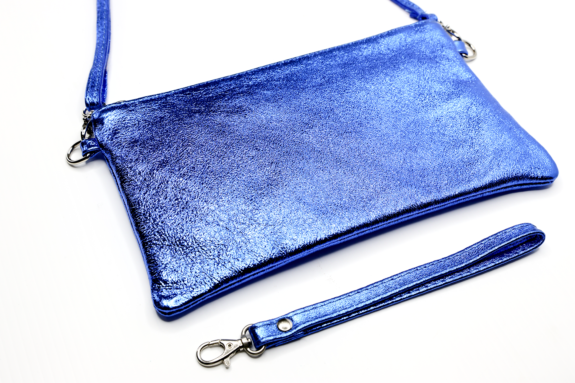 Elevate your style with our Leather block colour electric vibrant blue clutch from FaenzaLeather. The metallic sheen exudes sophistication and modern elegance.