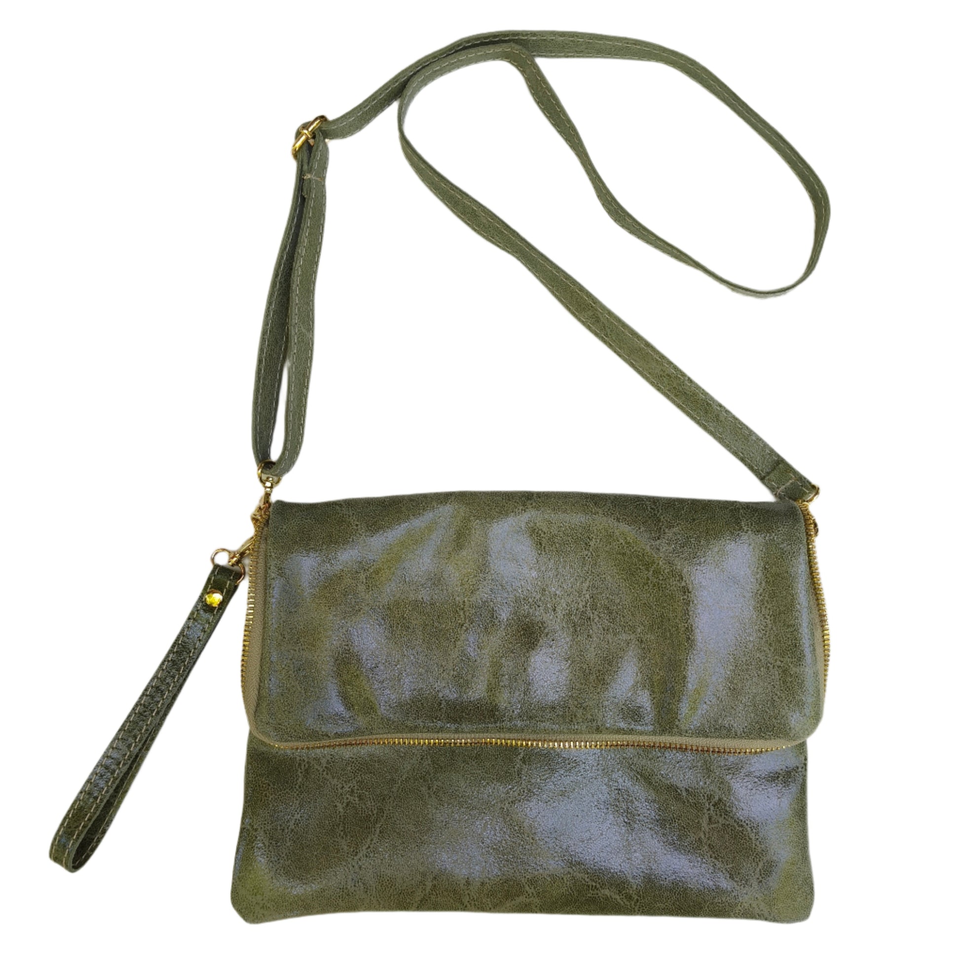 This mint leather folded bag is the perfect accessory for any occasion.