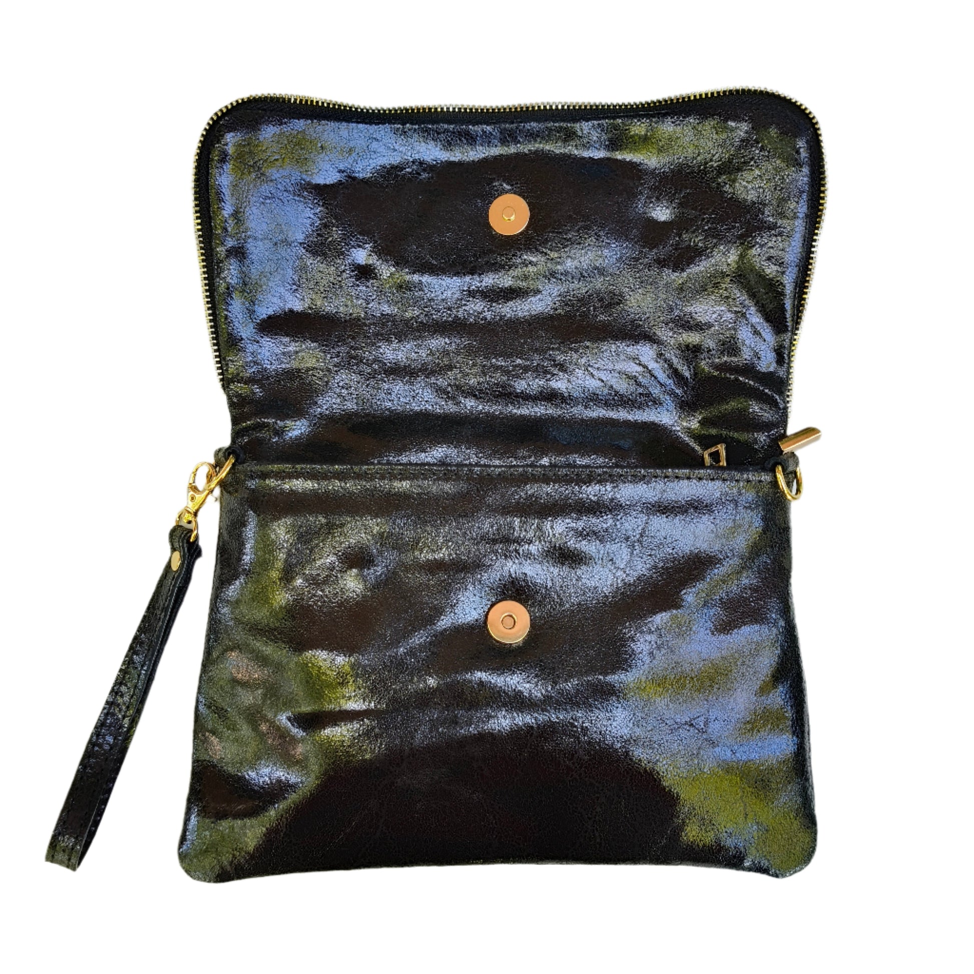 Crafted from luxurious Italian leather, expertly crafted and sleek, the Black Leather Folded Bag is the ultimate fashion statement.